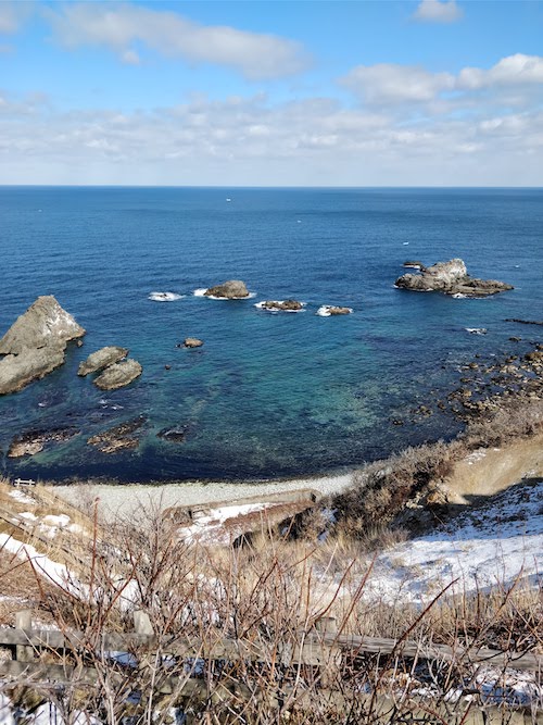 積丹岬は冬でも結構キレイでした。夏はもっとトロピカルな青色になります。