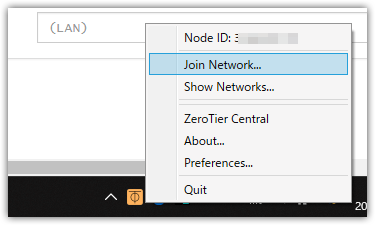 - リモートマシンのタスクバーのZerotierアイコンからメニューを出し、Network IDを入力してJoinする