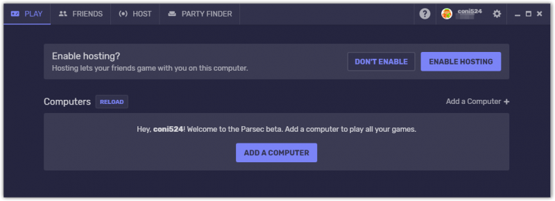 インストールされたParsecを起動し、ログイン状態にしておきましょう。