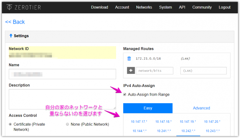 ZeroTierの設定でIPを自動取得する設定を入れておくとよいでしょう。