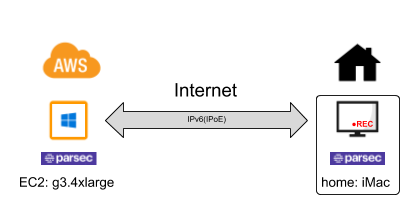 そこで、Parsecという、画面転送とレスポンスのレイテンシーに力を入れているGame向け転送ソフトを使っています。