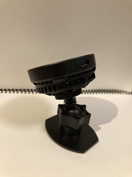 背面にカメラの三脚などで利用できるマウントネジがあるので、台座を別途購入すれば机の上や車のダッシュボードの上に置けてとても良い。