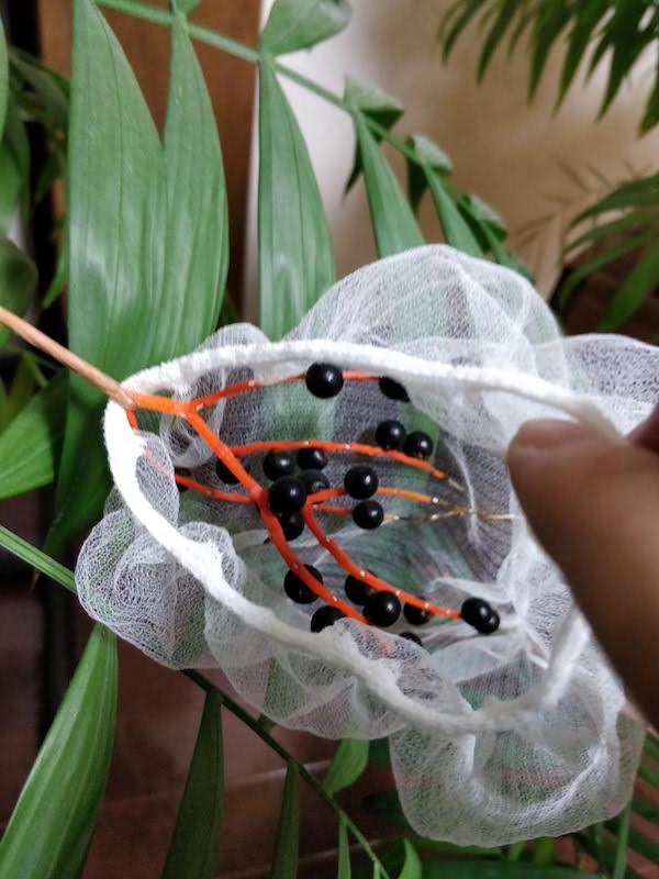 結論から言いますと、雄花を分解して、「がく」をそのまま雌花に詰め込みます。